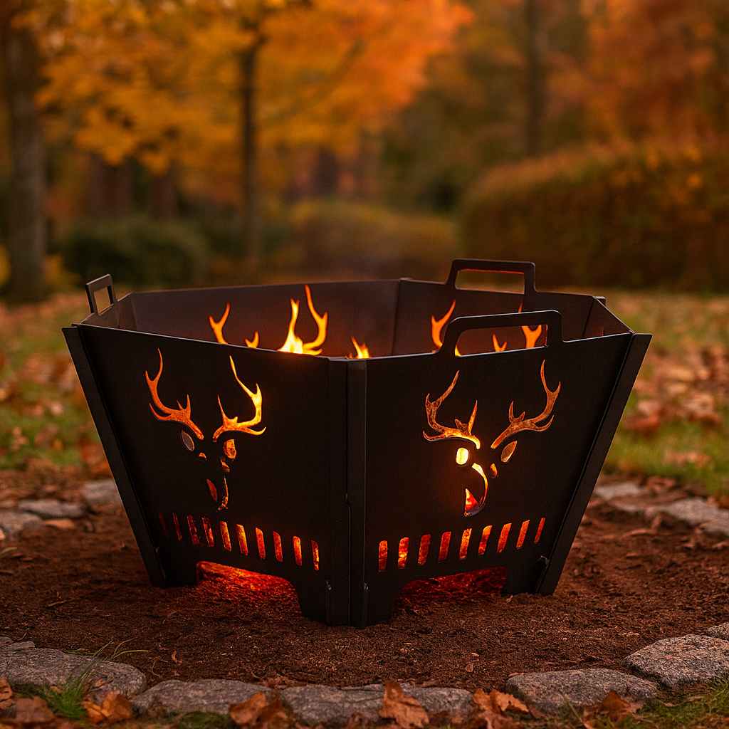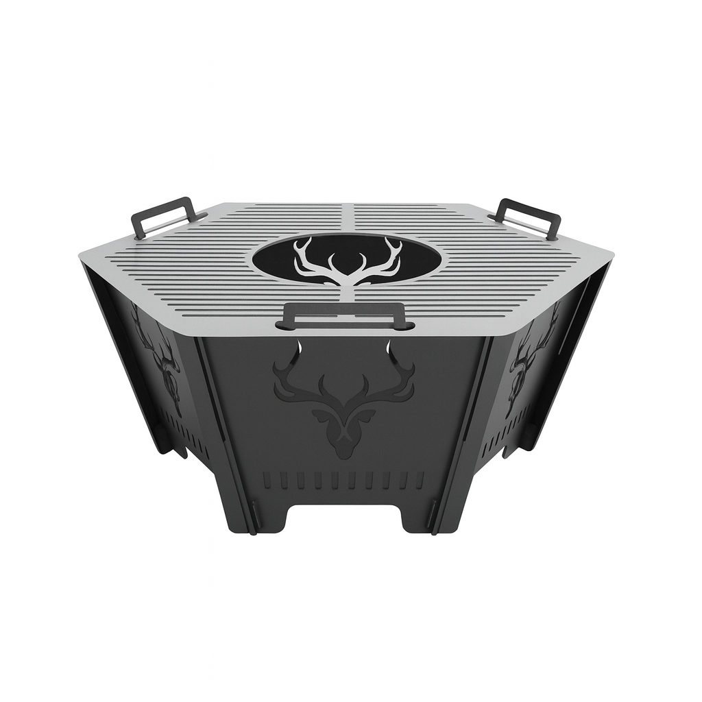Palenisko ogrodowe wzór „JELEŃ” – stalowe, nowoczesne, składane z rusztem 2w1